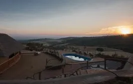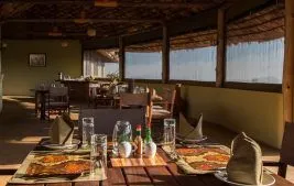 Karatu Simba Lodge features individual twin, double, and triple cottages, also known as rondavels. Each unit includes canvas walls and an attached bathroom with a shower. The rooms feature simple yet tasteful décor with handcrafted African hardwood furniture. In addition, every cottage offers a private deck furnished with safari chairs, allowing guests to relax while enjoying views of the surrounding pastoral landscape. From the deck, guests may spot baboons feeding in nearby barley fields or local herders guiding their cattle. At night, the sounds of bush babies and Montane nightjars create a peaceful atmosphere.