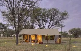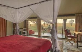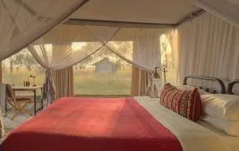 Crafted from wood and canvas, Kimondo combines the traditional elegance of East African safari style with a touch of Moroccan influence. The camp features nine spacious and stylish tents, each equipped with a king-sized cast-iron bed, an en-suite bathroom, and a private veranda. Offering a truly intimate Big Five adventure, It delivers vintage East African charm alongside modern comfort.