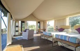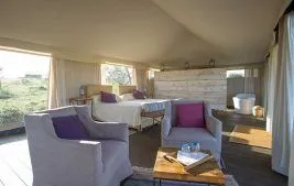 Nestled in North Serengeti near the Mara River in the Kogatende Area, this lodge offers a prime location to witness the Migration from June to November, alongside an impressive variety of wildlife. The property features 16 en-suite tents, including family accommodations, and is divided into two camps: north and south. Each camp has access to a Main House, complete with lounges, a restaurant, a viewing deck, and a swimming pool.