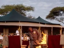 Why Choose Nyota Luxury Camp Suite Rooms? Welcome to our newly designed suites, offering special perks that elevate your stay to new levels of luxury. Set on an elevated foundation, each suite is more spacious than our standard rooms and features a large wooden deck with views of the rising sun and the winding Orangi River. This prime location is ideal for morning birdwatching or stargazing at night as you take in the vastness of the Serengeti.