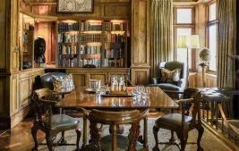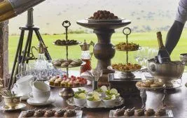 Each spacious cottage boasts large en-suite bathrooms, dressing areas, four-poster beds, fireplaces, living rooms, and French doors that lead out to private verandas. The elegant interiors include polished parquet floors, vintage collectibles, Persian carpets, and comfortable furnishings, enhancing Sasakwa’s unmistakable charm. The dining room offers contemporary takes on classic dishes, elevating the culinary experience.