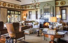 A striking entrance, expansive verandas, silver candelabras, and prized antiques blend seamlessly with local artifacts and tribal cushions, embodying the essence of a luxurious safari. Guests can enjoy elegant lunches on the lawn, bespoke wine-paired dinners, and a variety of activities such as tennis, bush walks, and rejuvenating spa treatments.